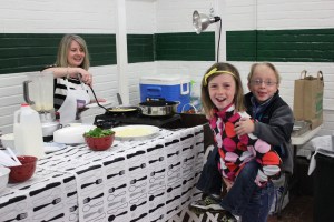 This picture is a great expression of the day’s attitude: getting by with a little help from your friends. Here sweet Bella gives a boost to her young neighbor Cameron who was determined to get a better glimpse of the crepe-making